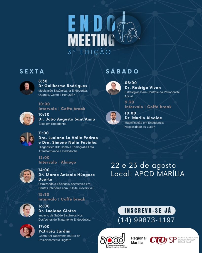 Já garantiu sua inscrição? O 3º Meeting de Endodontia da APCD Marília está chegando e promete ser um dos maiores encontros científicos da odontologia no interior paulista!