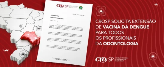 Em ofício dirigido ao Dr. Eleuses Vieira de Paiva, secretário estadual de Saúde, o Conselho Regional de Odontologia de São Paulo (CROSP) solicita a extensão da imunização contra a dengue a todos os cirurgiões-dentistas, técnicos de saúde bucal e auxiliares de saúde bucal dos serviços públicos e privados que atuam no Estado de São Paulo. Desta forma, todos estes profissionais poderiam ser imunizados.