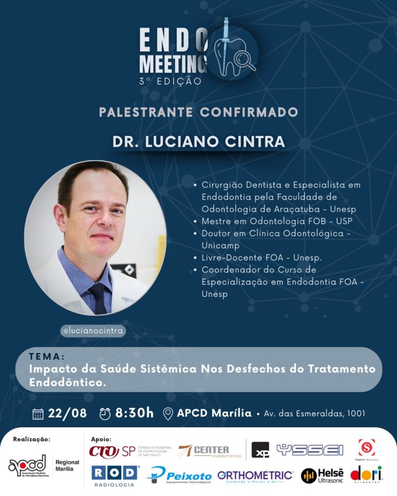 Dr. Luciano Cintra é presença confirmada no Meeting de Endodontia da APCD Marília: aprimore sua prática com uma das maiores autoridades do Brasil