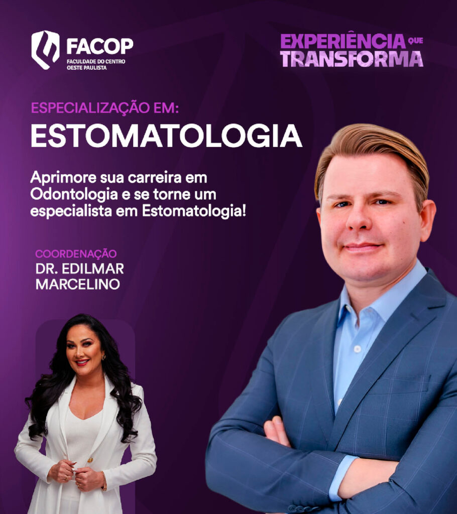 Aproveite a parceria entre a APCD Marília e a FACOP para fazer a sua Especialização em Estomatologia, com a coordenação do Dr. Edilmar Marcelino.