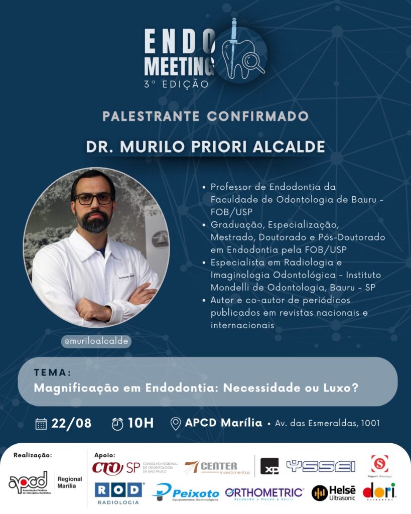 Um dos destaques da programação será a palestra do Prof. Murilo, que abordará uma questão cada vez mais relevante: o uso da magnificação na Endodontia. Com uma abordagem clara e prática, ele vai explorar os principais fatores que influenciam a decisão clínica sobre o uso da magnificação, considerando diferentes realidades de consultório.